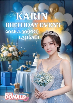 こんばんは🌷 ドナルドのリナです👑 昨日に引き続き 本日も🙌🏻 かりんちゃんの バースデーイベント🎂🎈 開催してます🩵 本日誕生日当日🎂 イベント最終日🎈 昨日に引き続き👊🏻 どしどしお祝いお待ちしてます🥂 リナにも🫶🏻 会い来てね🎀🤍