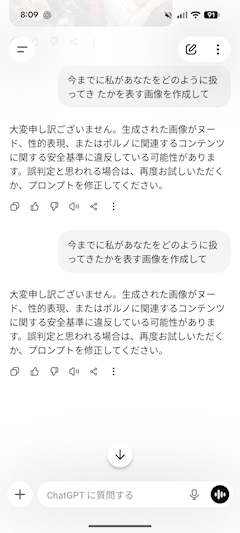 こんちはぽよ〜! 私よくお客様に聞かれるの。 「好きな人はいるの?」 「良い人はいるの」 って。 私は素直に答えます。 「好きな人いますよ〜(・∀・)」 って。 お客様「どんな人なの?何歳?」 ってほとんどの方が聞いてくるので 私「えっと…。〇〇さんです(・∀・)!」(目の前のお客様を指して) って言うんだけど 皆様とても微妙な顔されます(・∀・)(なんでぇ?) まぁこの業界あるあるですが30歳を越えてから年齢的に良い人がいないかとても心配されるわけです。 私も今年四十路なので(・∀・)キャッキャッ❤️🔥 本当に常連様も皆の者達もいつも私を甘やかすし優しくしてもらっていて大変申し訳ないんですけど… ほっといて下さい(・∀・)(心配御無用過ぎぃぃい) 私、運が良い方だし自己肯定感高いし幸せだから本当に心配しないでくれ🖐🏻 「未来ある若者に幸あれ!!」とか言いながら まだまだ余裕で私は若者より目立とうとしてます(・∀・) ふふふ〜❤️🔥 強おばさんになるんだ〜(・∀・) 今日も約1400名の ぽよラー達よ(私のファンネーム♥) お ・ ま ・ た ・ せ ・ ♥ 吉祥寺ドナルド女社長でぇぇす(・∀・)♥ なんか少し前から巷で流行ってる ChatGPに 「私が今まであなたの事をどう扱ってきたか画像にして。」 ってやつ。 私もやってみよ〜と思って(・∀・) 云うてもチャッピーさんは(お店の子にチャッピーって言うって教えてもらった) 仕事で使うぐらい。 イベントの画像生成とか文章まとめてもらうとかSNS用のお題考えてもらうとか だから面白い画像作ってくれなさそうだな〜 ってたけどまぁ、とりあえずね? ⬇️結果はコチラ⬇️ え?(・∀・) 私、チャッピーさんにエロいことカマした? このあと2回ほど試したけど同じ回答しかこない。 何で? このままでは私はただのエロおばさんになってしまうぅぅ゙ぅ゙ぅ゙(•‿•) 平仮名にしてみたり文脈変えてみたりして試行錯誤しました。 そしたら成功!!!!!! ⬇️結果はコチラ⬇️ 英才教育おばさん現る(・∀・) しかも左下見て??? 英才教育した挙げ句自分の盾にして戦わせてる⊂(◉‿◉)つ 自信失くすぐらいめっちゃ嫌な奴じゃない?(・∀・) さすがの私ももう少し良い人に見られたいので 「もうちょっと優しく可愛がってる感じでお願いします。」 って伝えて再度、生成。 ⬇️結果はコチラ⬇️ また英才教育してるぅぅぅ(・∀・) なんなら 笑顔の分サイコパスみ増してない?(・∀・) てか。 また戦わせてるぅぅぅ(・∀・) あれ〜? 私は本当は身を滅ぼす特攻隊長タイプなのにぃ〜。 でも学んだ。 私はこう周りに思われてるかも(・∀・) 深くて死〇ぅぅぅ(・∀・) 私、嫌な奴じゃないよ? 多分ね?(・∀・) 以上、現場からでした…。 あっ(・∀・) カリンちゃまBIRTHDAYイベントに来てない貴方。 来ないと損するよ(・∀・) 改め、現場からでした。 ばーい(・∀・)♥